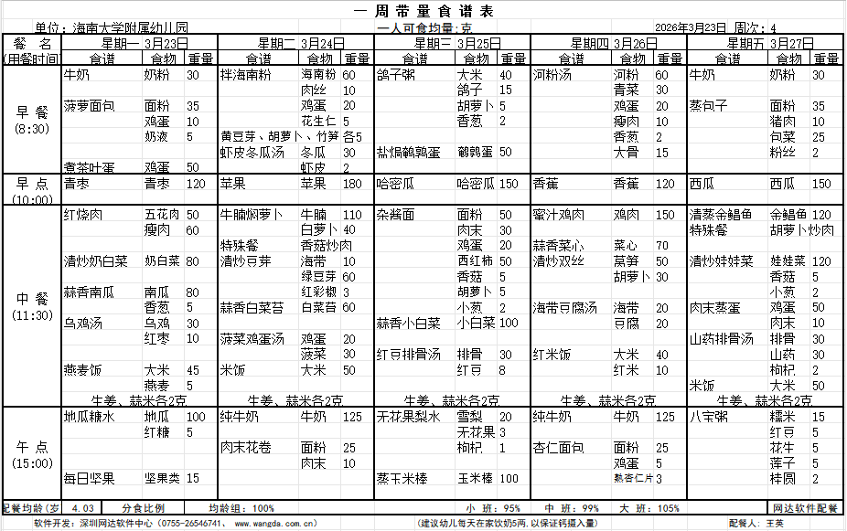 海南大学附属幼儿园2026年春季第四周食谱公告